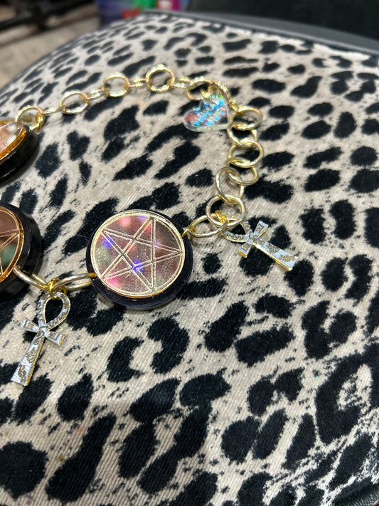 Black And Gold Ankh and 5 Point Star Choker Marina Fini