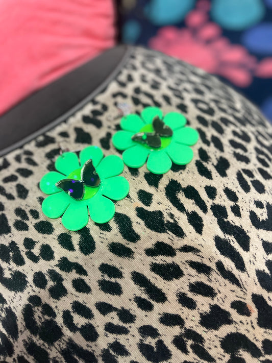 Green Flower and Butterfly Mirror Earrings by Marina Fini