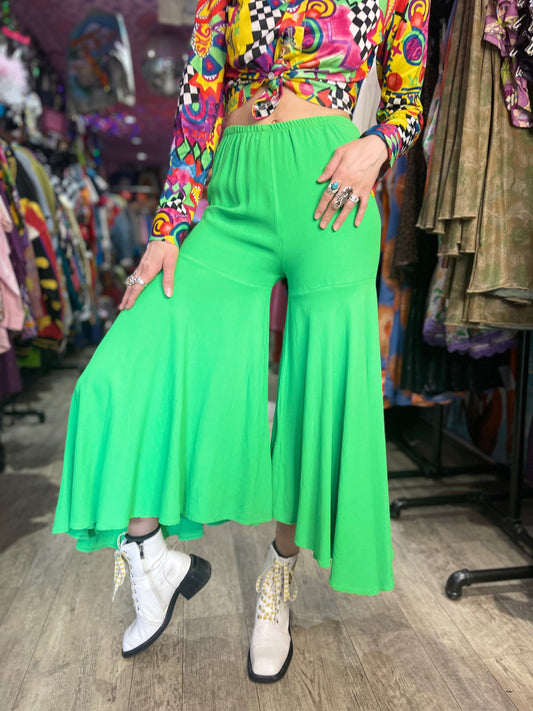 Vintage Lime Green Hippie Palazzo Bell Bottom Pants