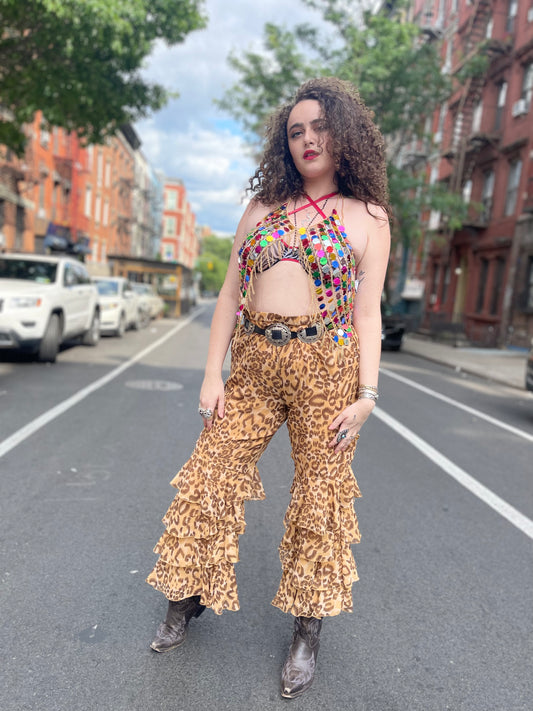 Vintage 90s Plus Size Leopard Bell Bottoms