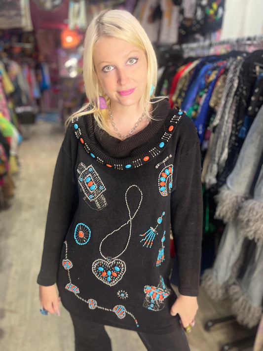 Vintage 80s Turquoise Beaded Sweater