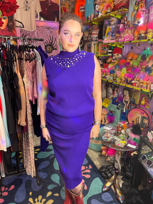 Vintage 80s Purple Pearl Studded Sweater Turtleneck Tunic Top