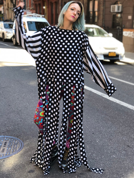 Vintage 80s Draped Polka Dot Long Fringe Blouse