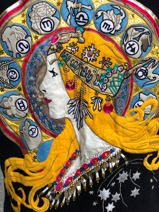 Vintage 80s Patchwork Bedazzled Astrology theme sweater