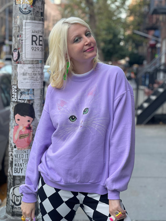 Vintage 80s Lavender Pastel Cat Sweatshirt