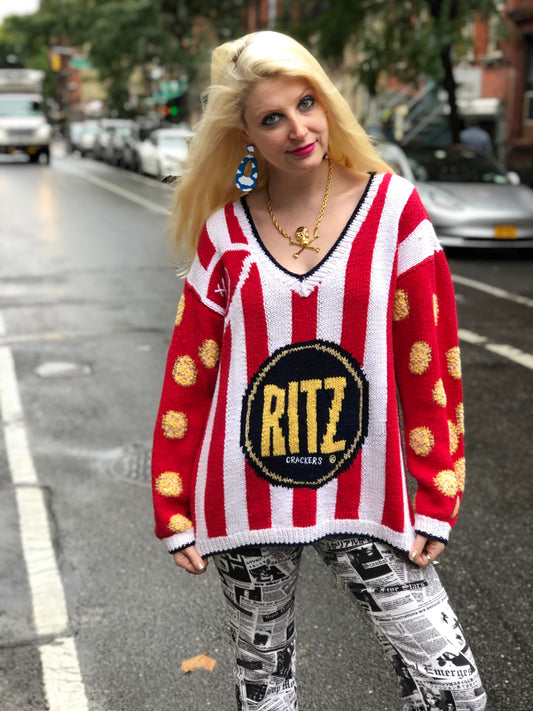 Vintage 80s Ritz Cracker Novelty Sweater