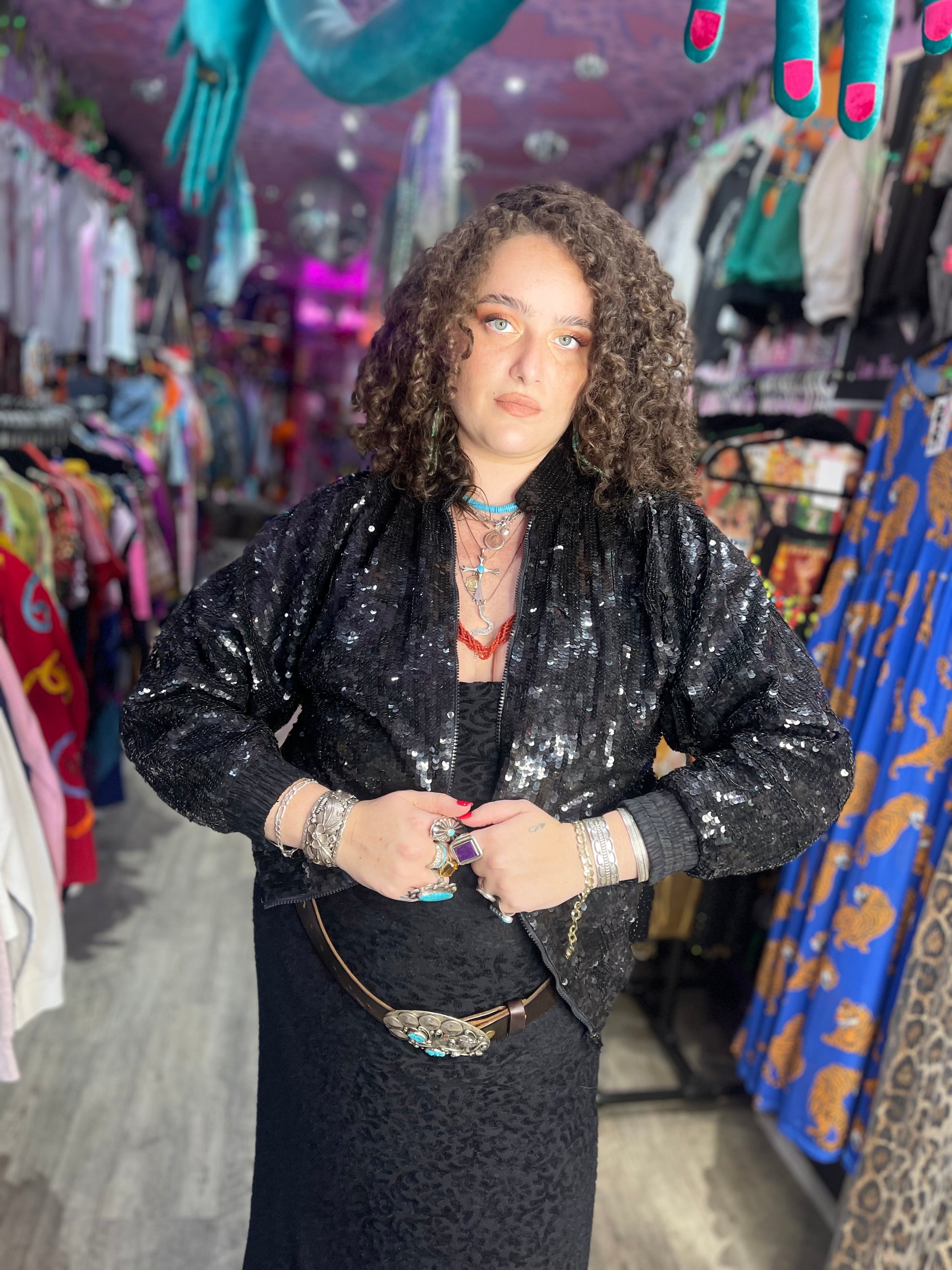 Vintage 80s 90s Sequin Lifestyles Bomber Jacket