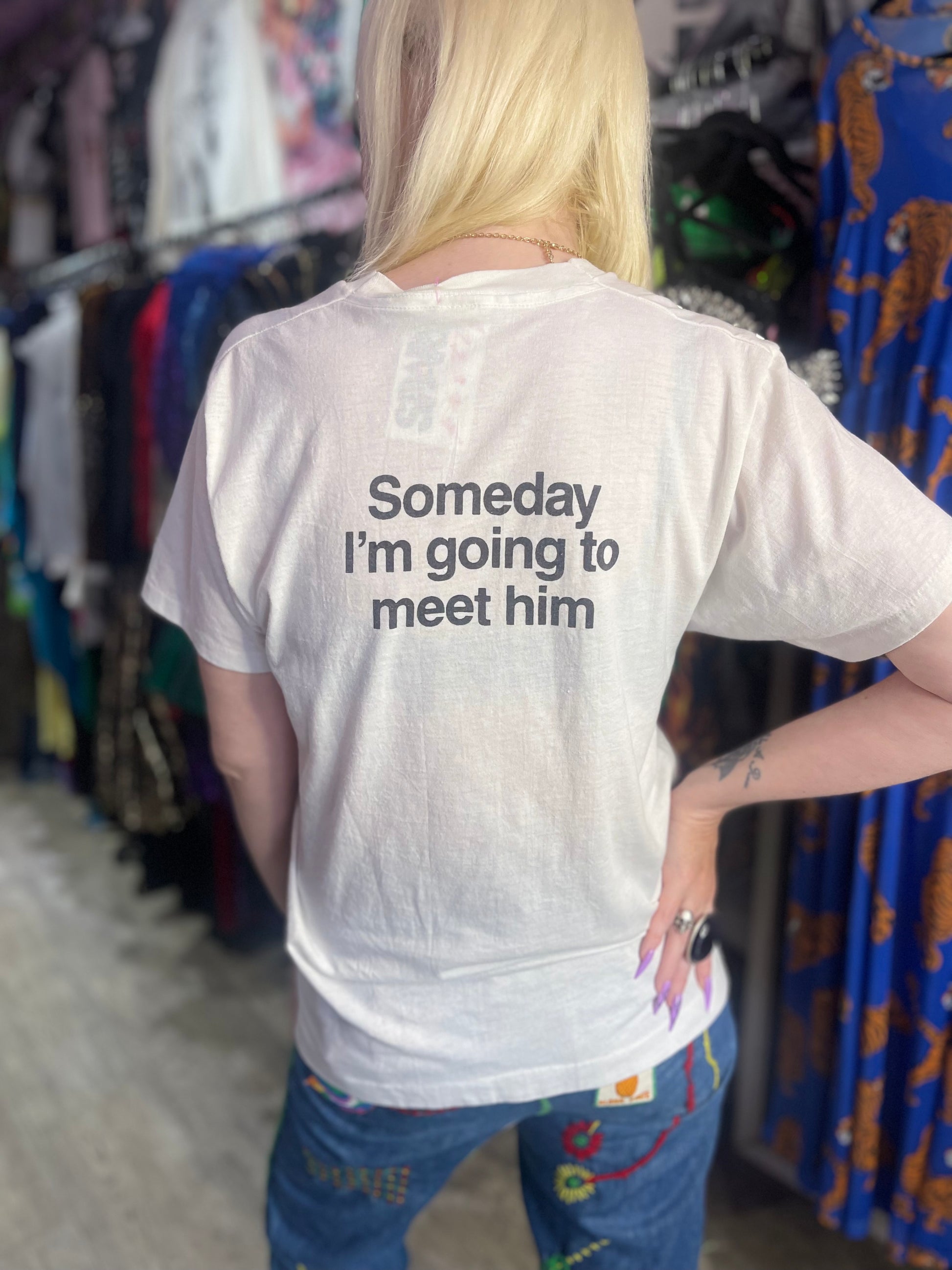 Incredible find! Super Rare 80s Ferris Bueller movie tee! Reads “I’m a close personal friend of Ferris Bueller” on front and reads “Someday I’m going to meet him“ on back. Never seen another before! Paper thin and soft with old Screen Stars label tag