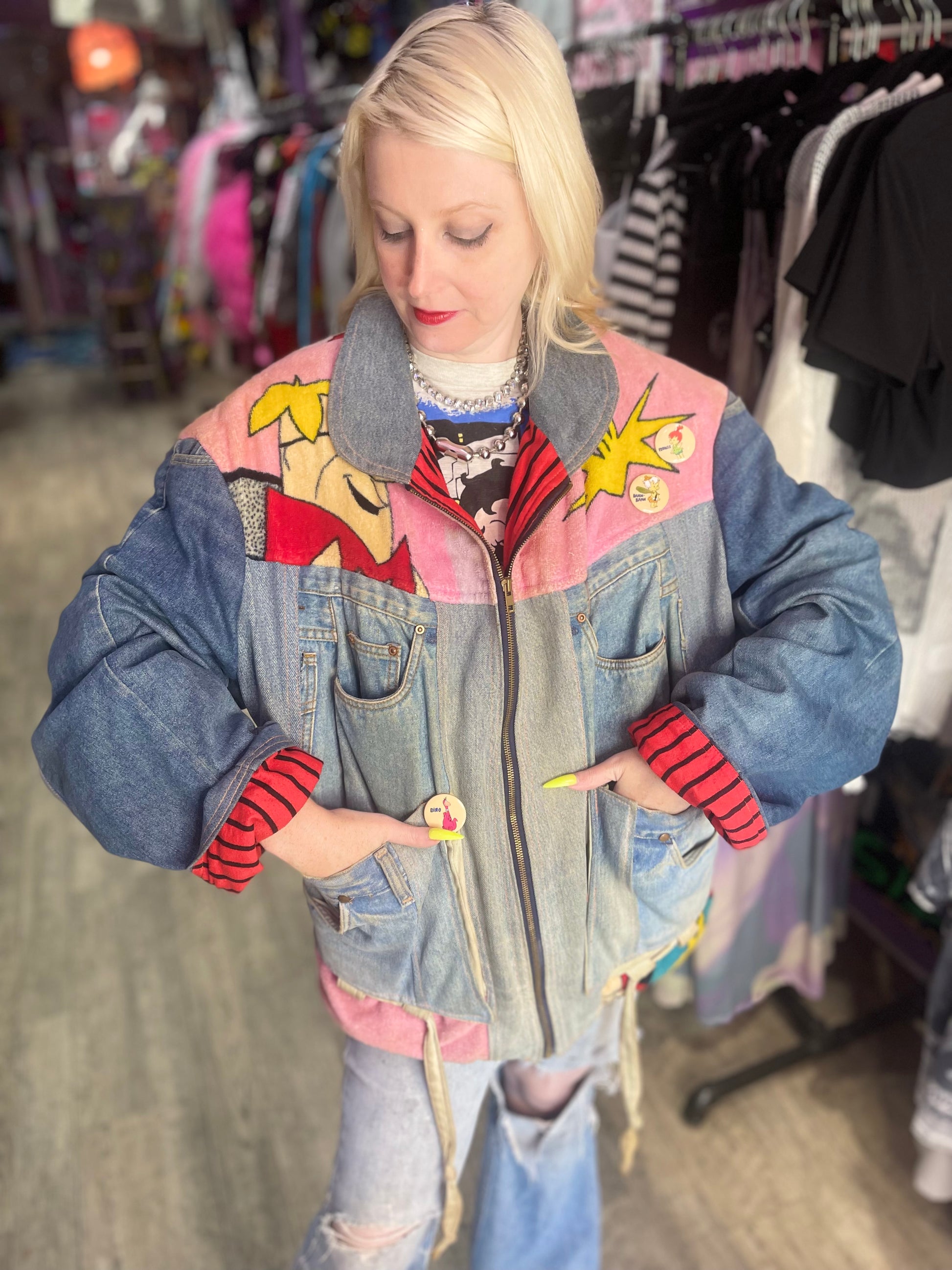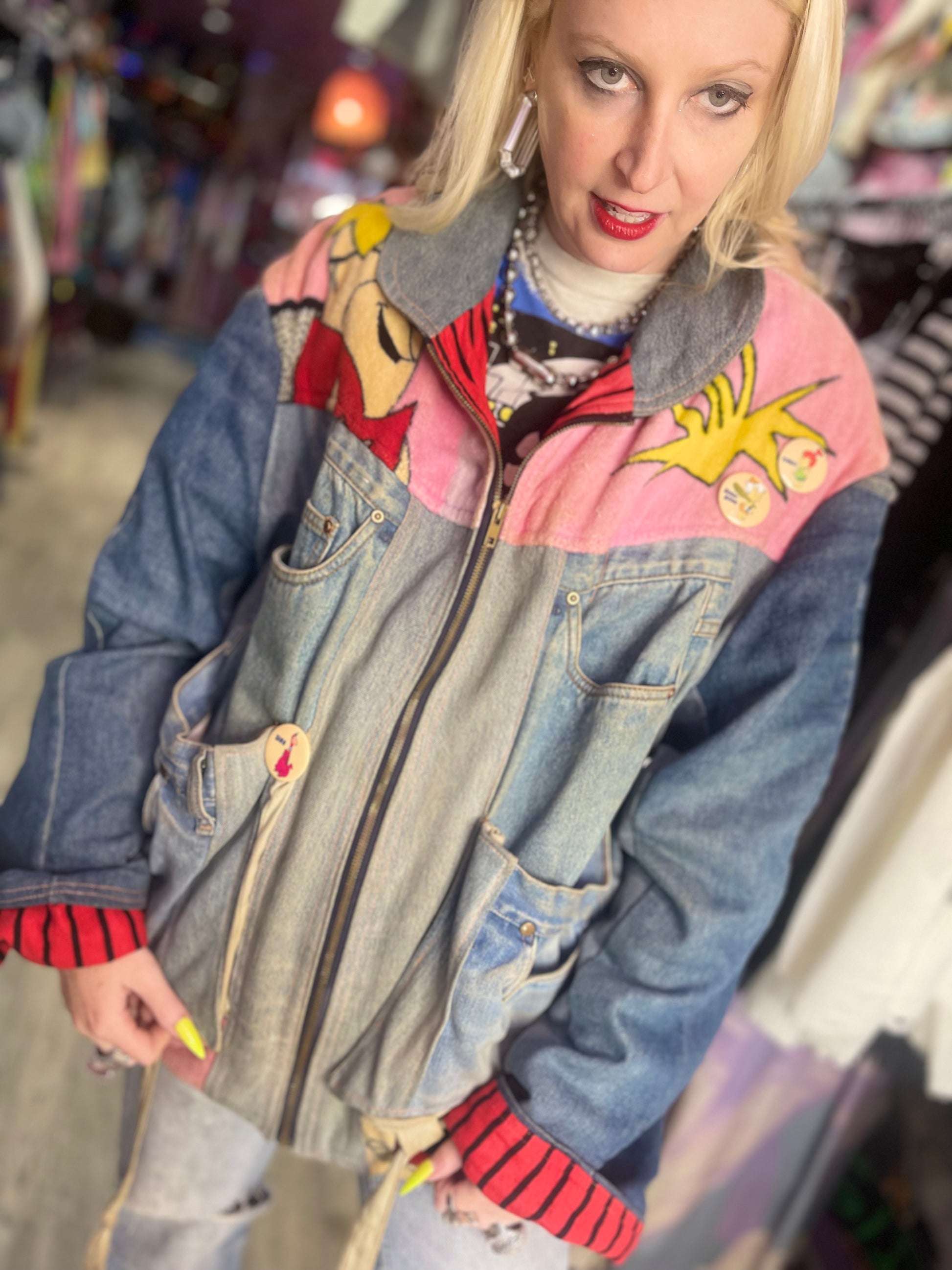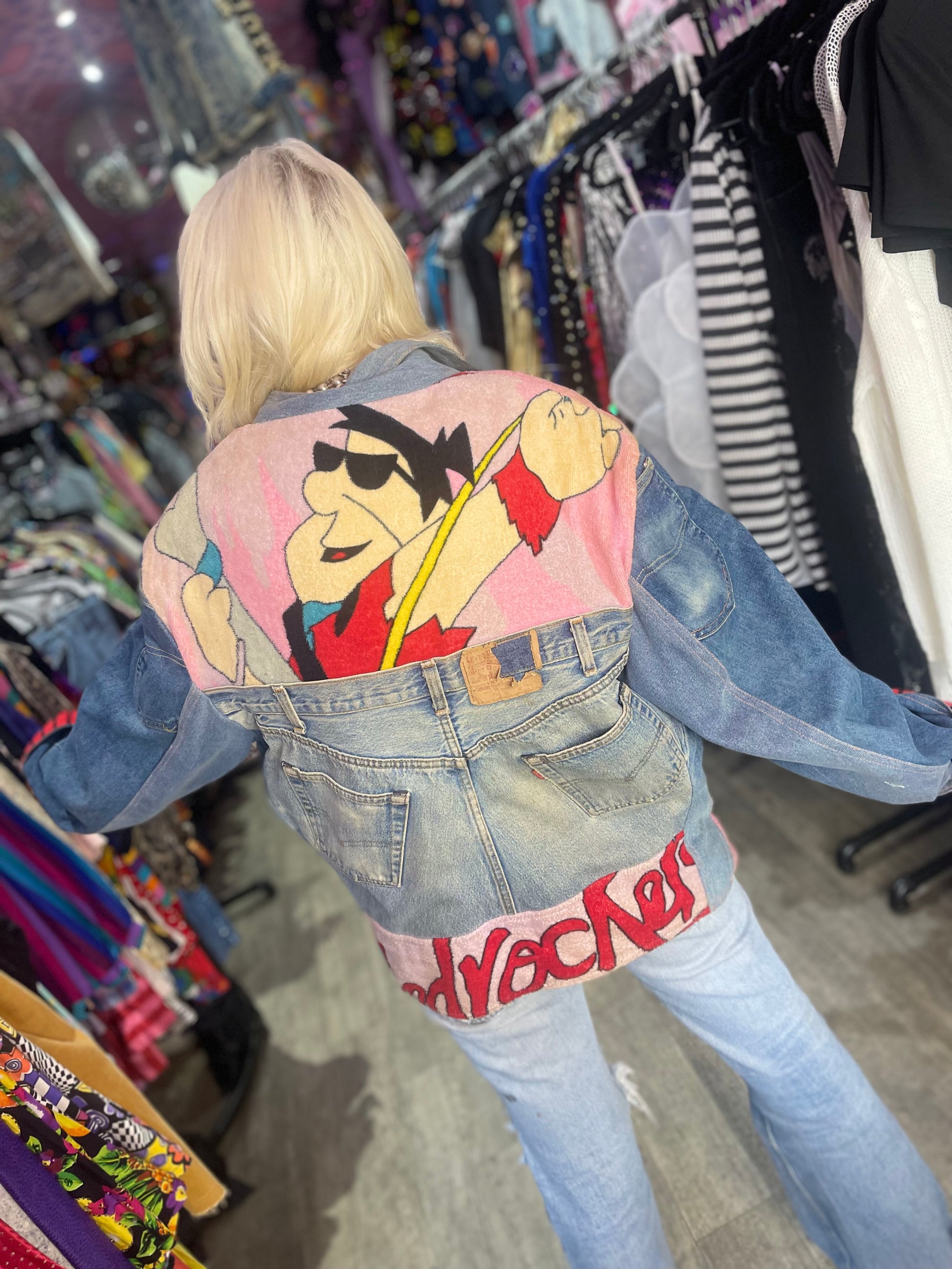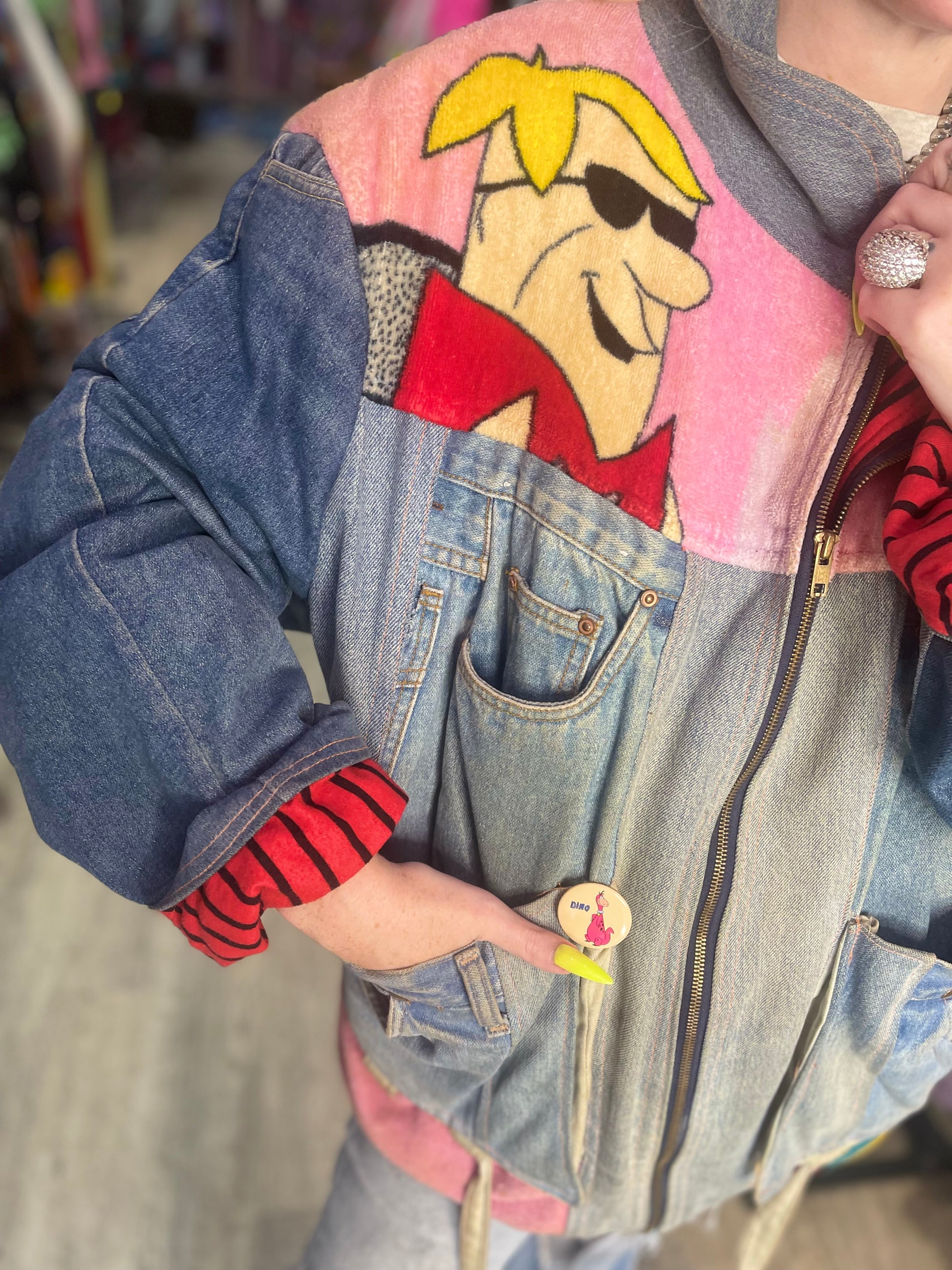 Vintage 80s Patchwork Flintstones Jean Jacket