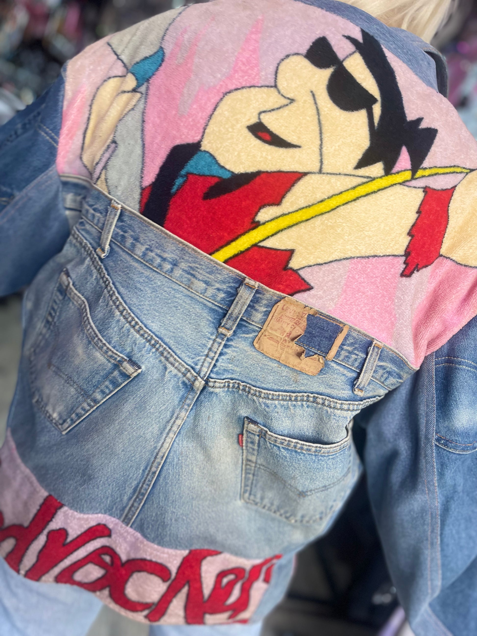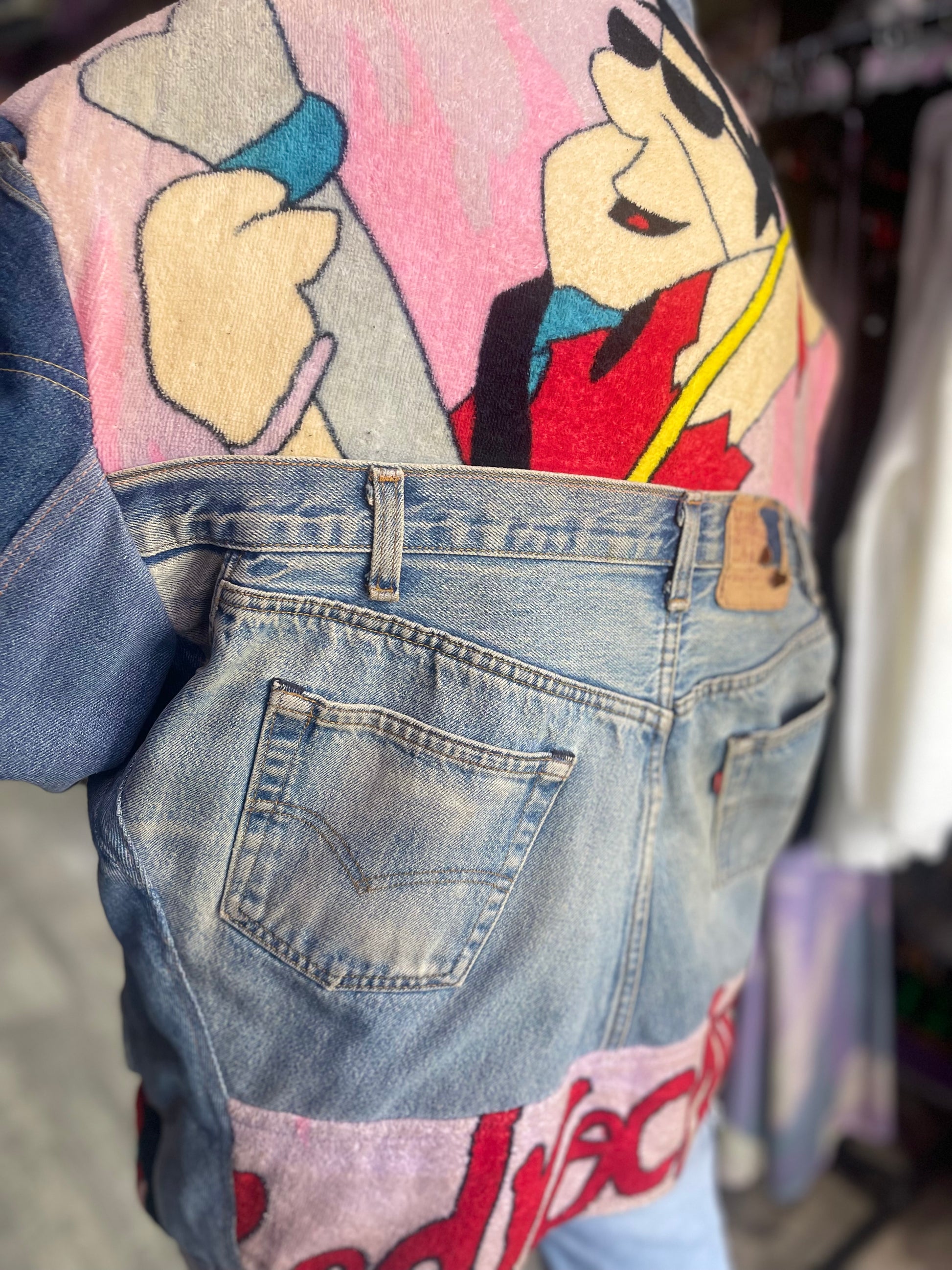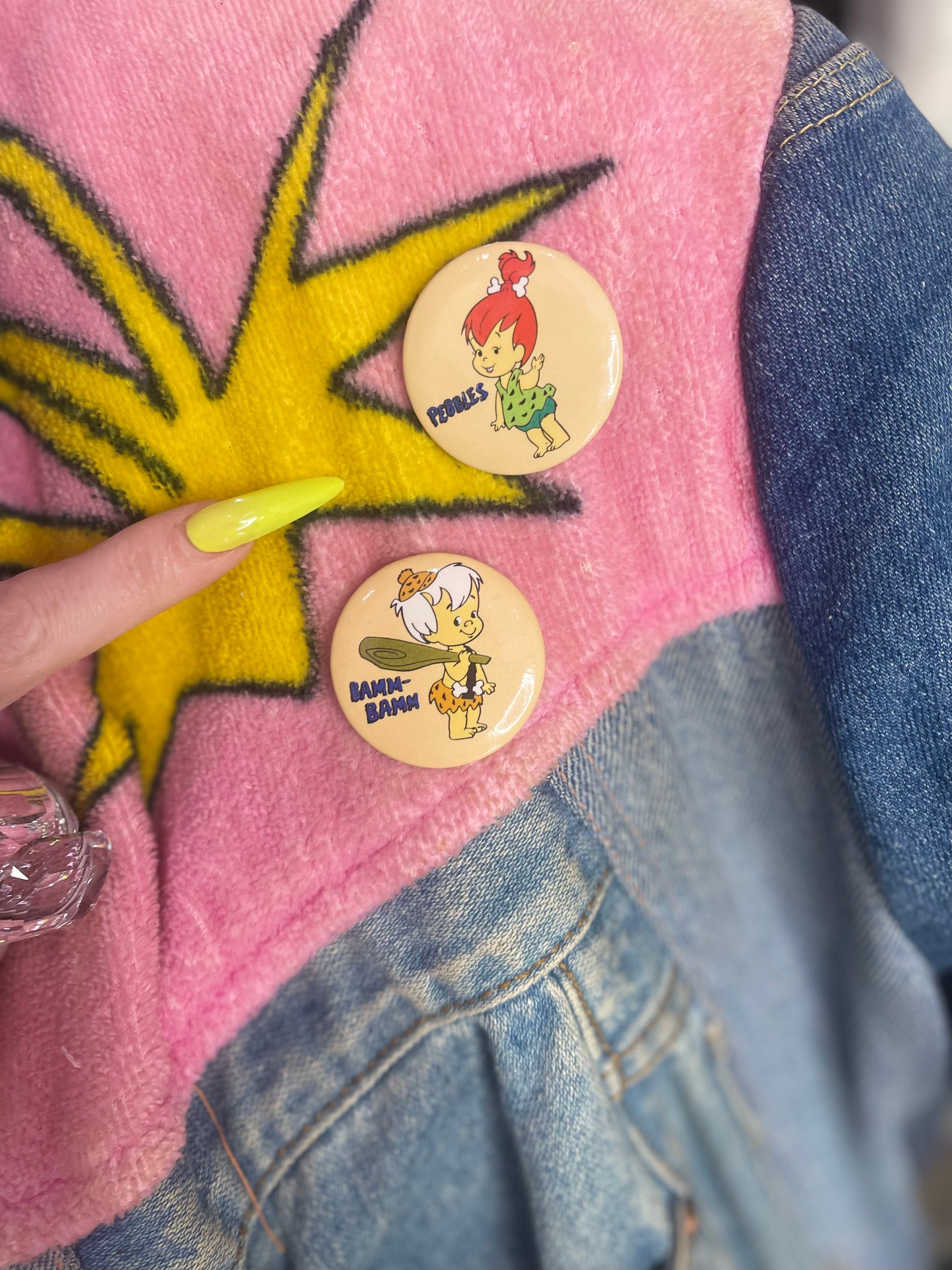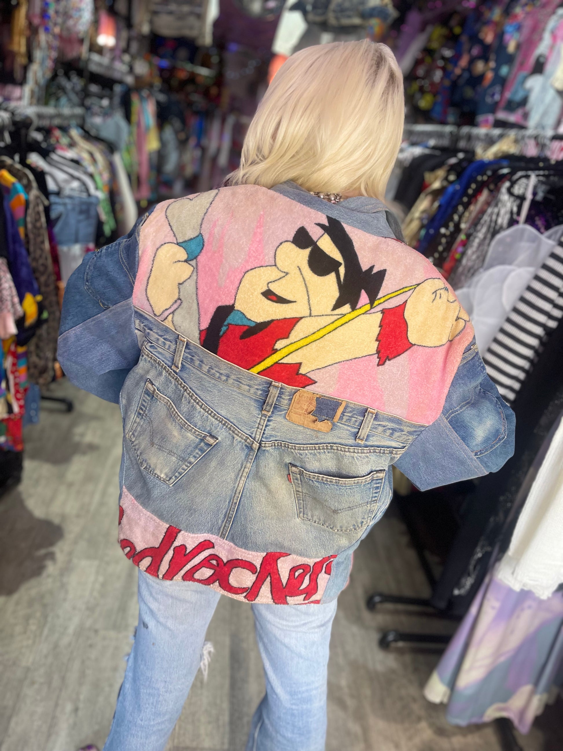 Vintage 80s Patchwork Flintstones Jean Jacket