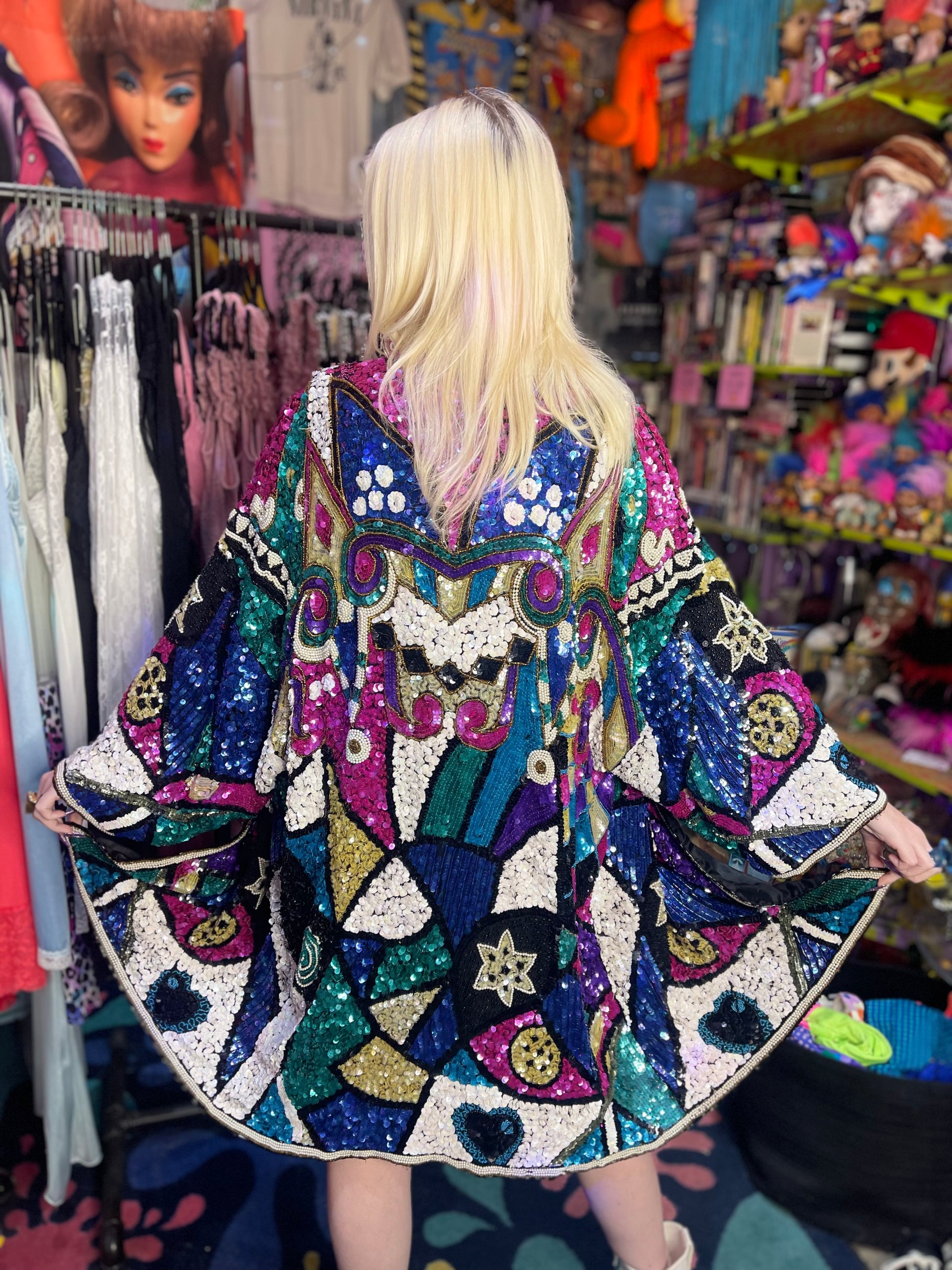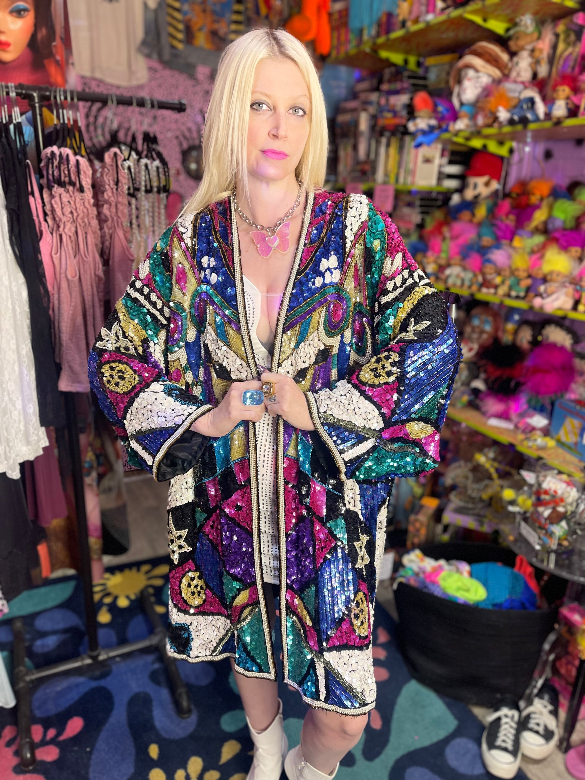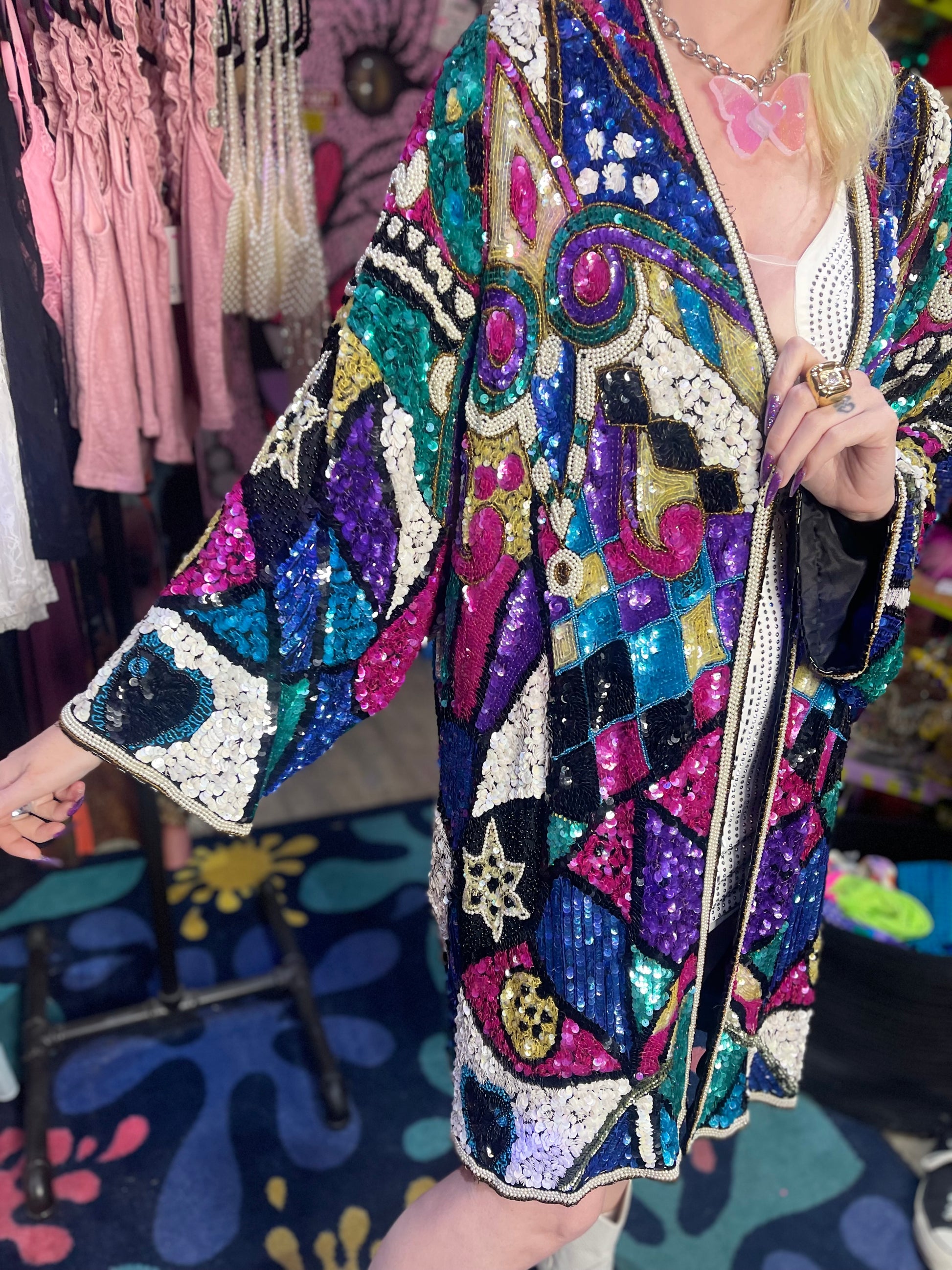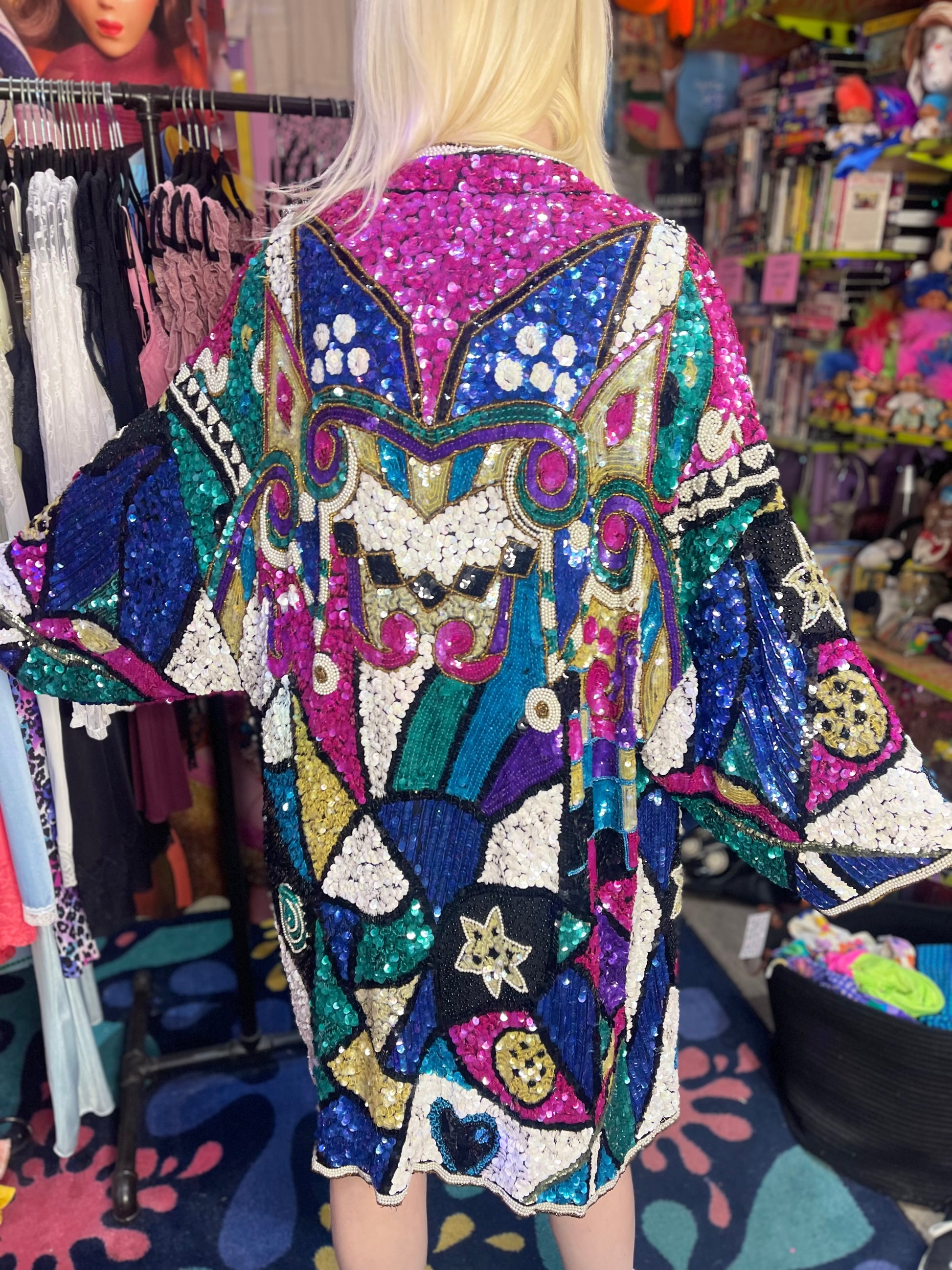 Vintage 80s Sequin Encrusted Kimono Jacket