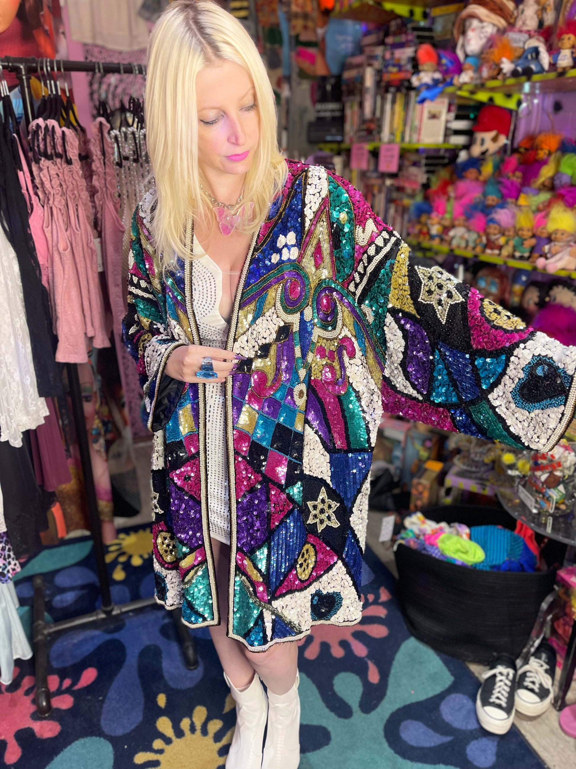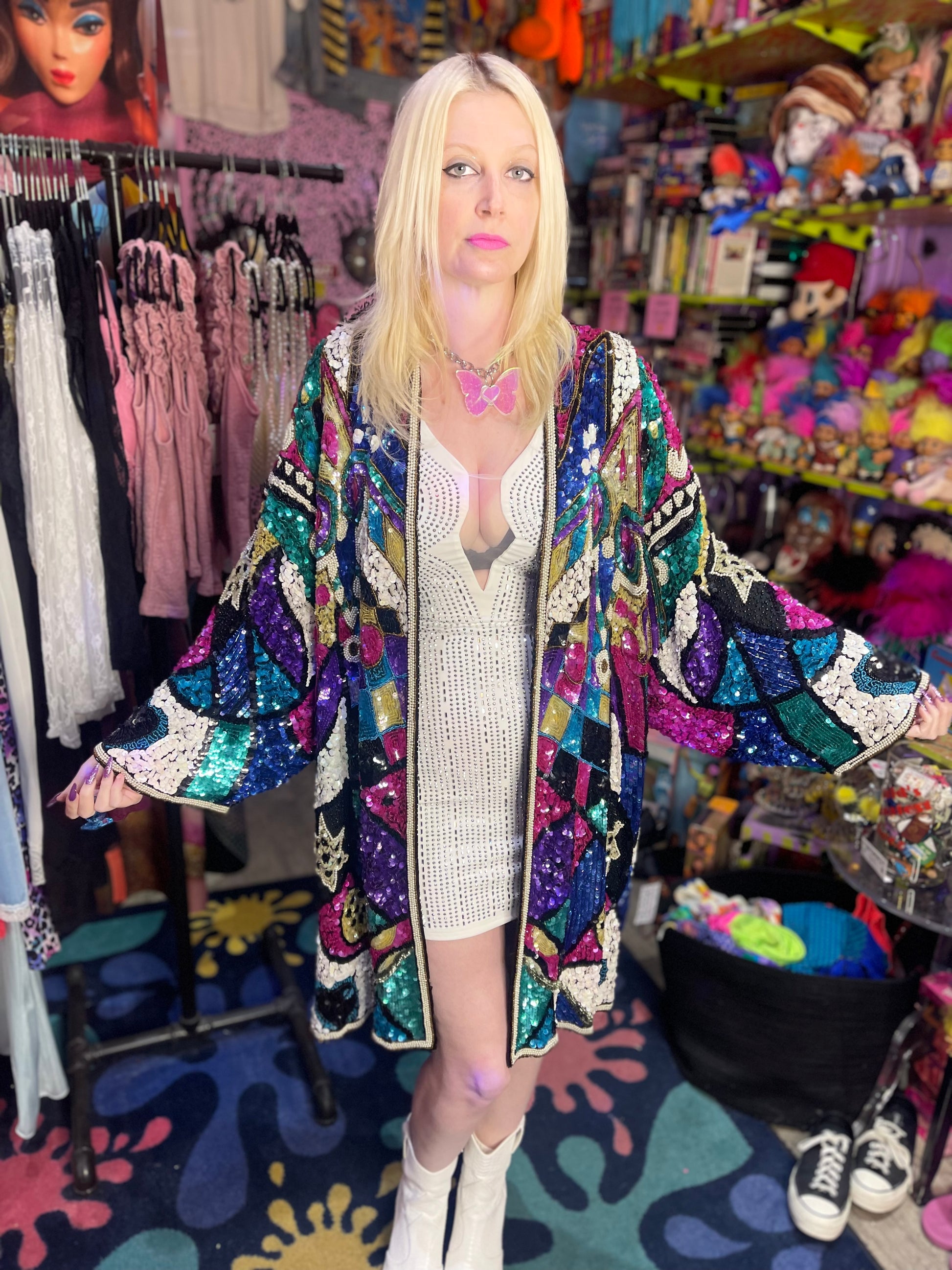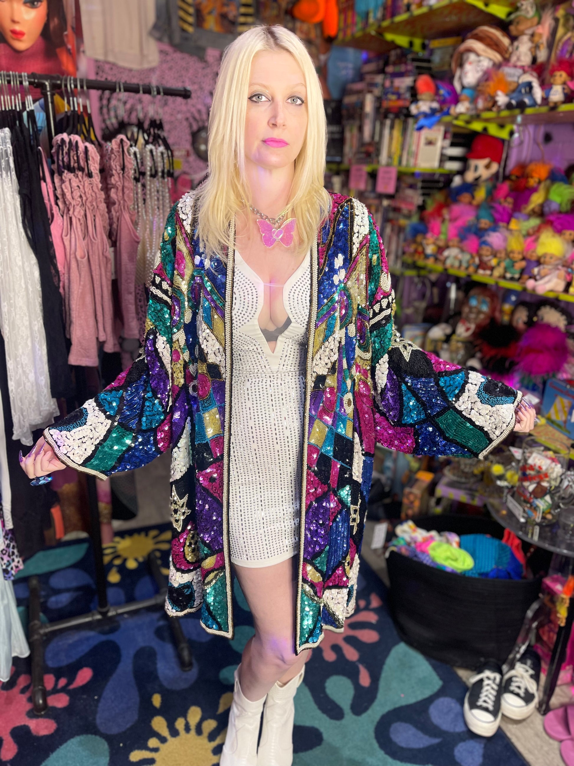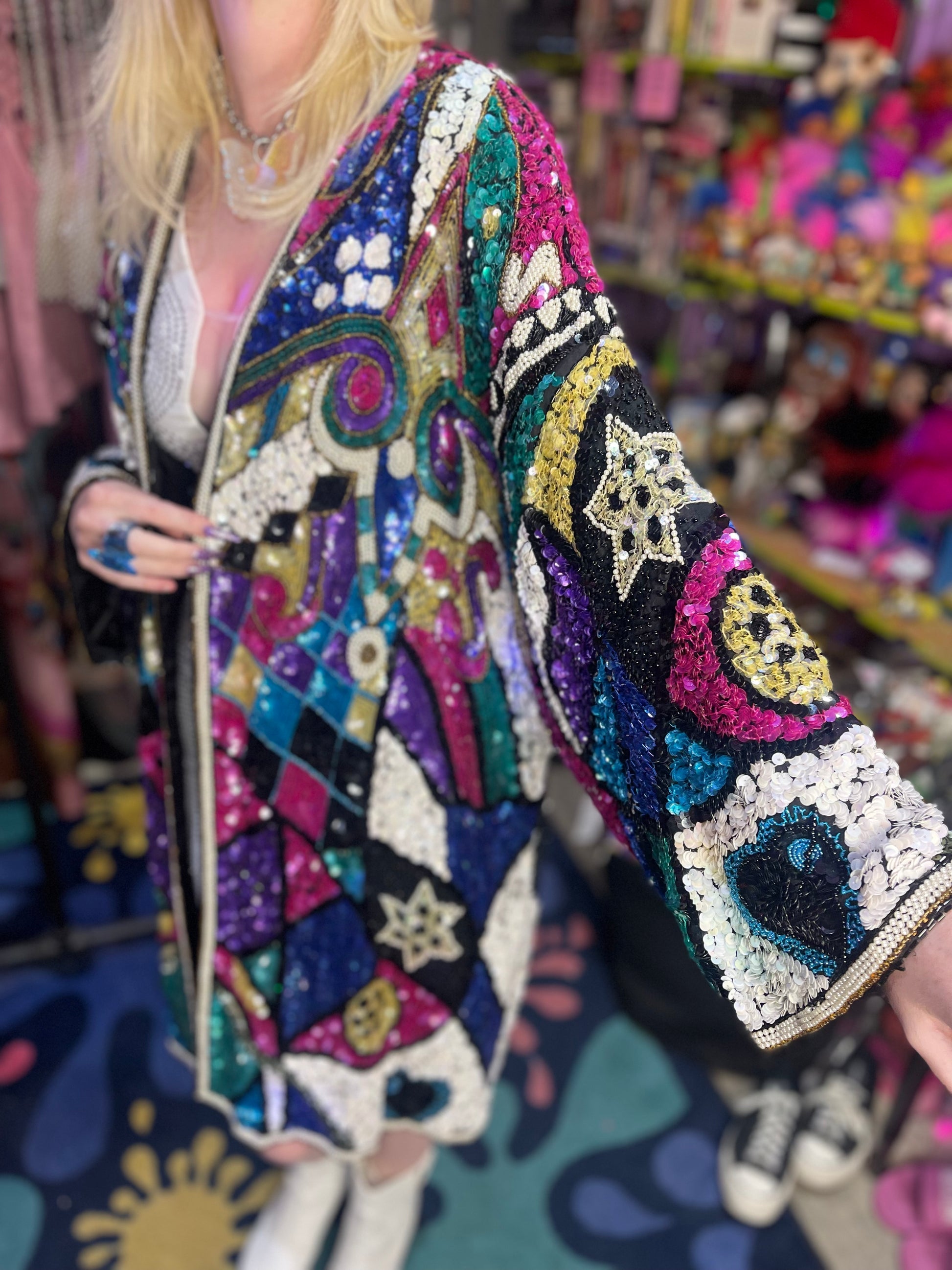 Vintage 80s Sequin Encrusted Kimono Jacket