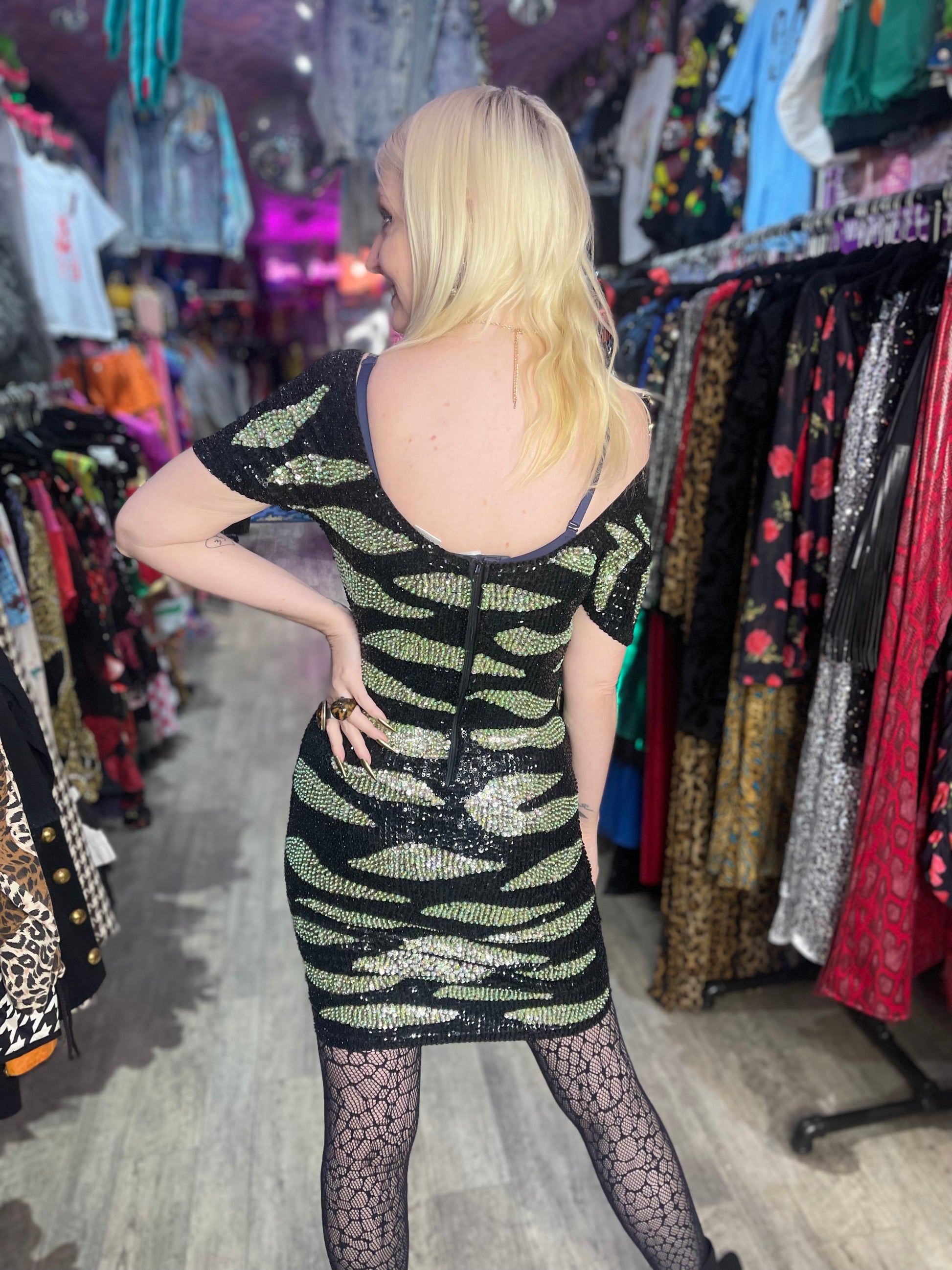 Vintage 90s Sequin Animal Print Dress