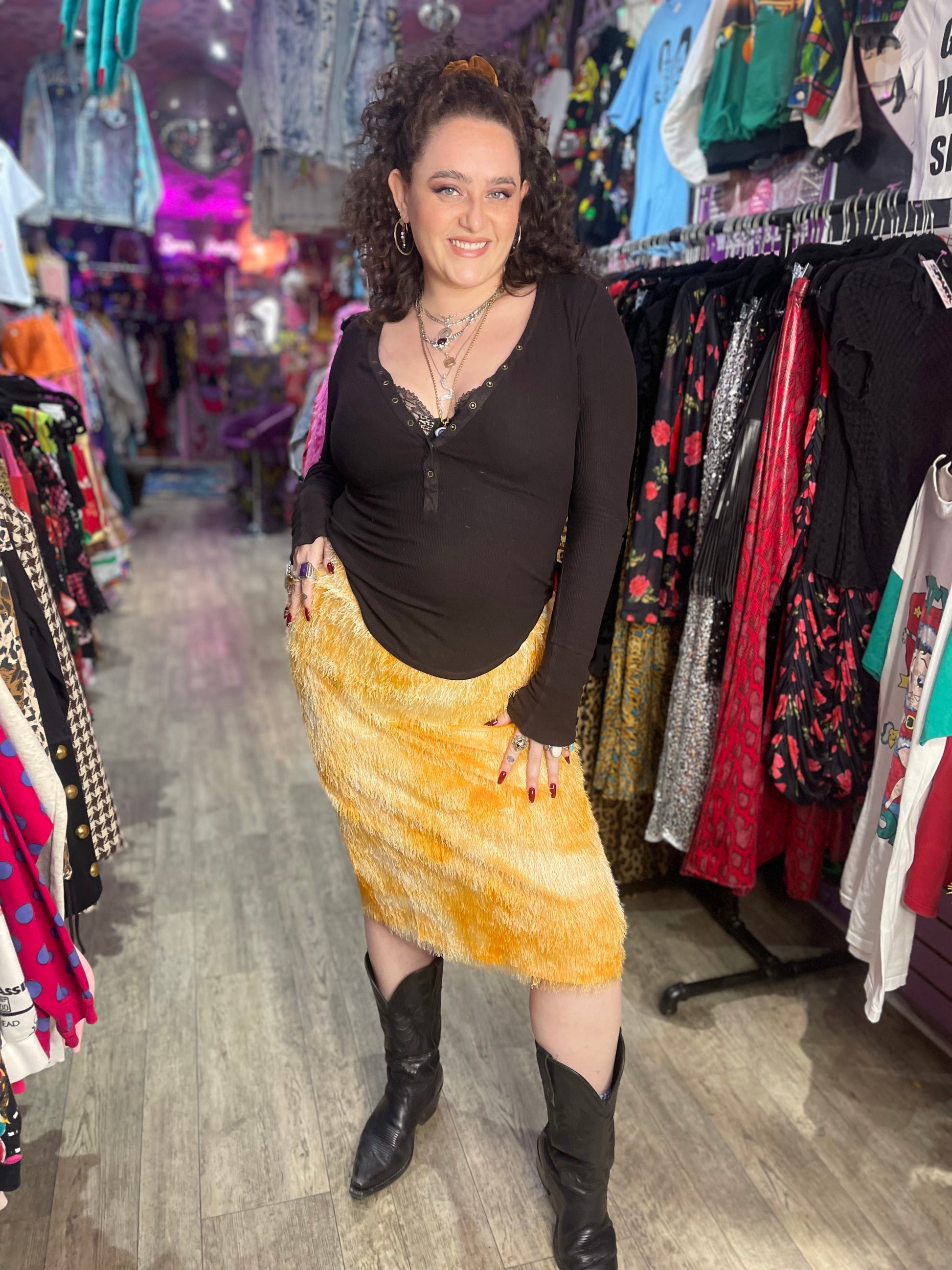 Incredible y2k midi skirt. Peachy hues with Allover soft fuzzy fabric